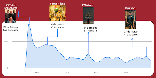 Gracias a estos filtros, “LA MONEDA DE LA SOLEDAD” tuvo un alcance de 1,691 streams orgánicos durante el día de su estreno. Pero el verdadero impulso vino de combinar el esfuerzo (y dinero) en publicidad, con contenido emocional.